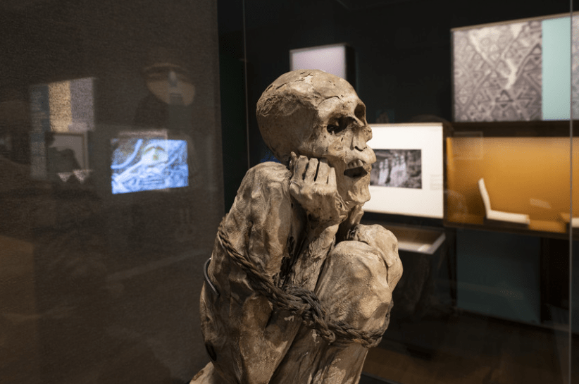 A dieci anni dalla sua riapertura, il museo sceglie di affrontare una delle ossessioni più profonde dell’umanità: sottrarre il corpo al tempo. Non per illuderci che la morte non esista, ma per negoziare con essa. Per rallentarla. Per addomesticarla. D’altronde, la mummificazione non è un rituale arcaico confinato a civiltà lontane. È un gesto universale. Un’idea che attraversa continenti, religioni, epoche. Dal Cile preistorico all’Indonesia contemporanea, dall’Egitto tolemaico all’Europa moderna, conservare un corpo significa affermare che l’individuo non coincide con la sua putrefazione. È per questo che la mostra rifiuta una definizione ristretta di “mummia”. Qui ogni corpo conservato conta: naturalmente o artificialmente, per sempre o provvisoriamente. Non esiste una mummia-tipo. Esiste un desiderio umano: non lasciare che il corpo diventi immediatamente assenza.