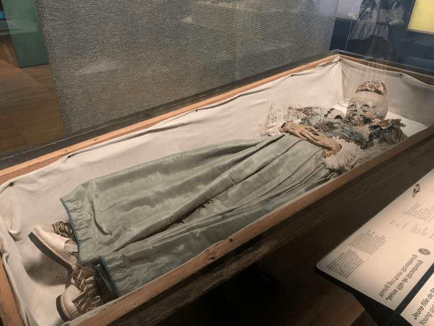 In diversi punti del percorso, l’esposizione si sofferma sulle differenti tecniche di mummificazione. Alcune sono naturali e rese possibili da particolari condizioni di temperatura o di acidità dell’ambiente. Altre sono il risultato di interventi umani e spaziano dall’affumicatura e dall’essiccazione al sole (boucanage) — come nel caso della donna nota come “regina guanche” dell’VIII secolo nelle Isole Canarie — fino all’eviscerazione e al riempimento del corpo con tessuti e fibre vegetali, come avvenuto per la Giovane di Strasburgo del XVII secolo.